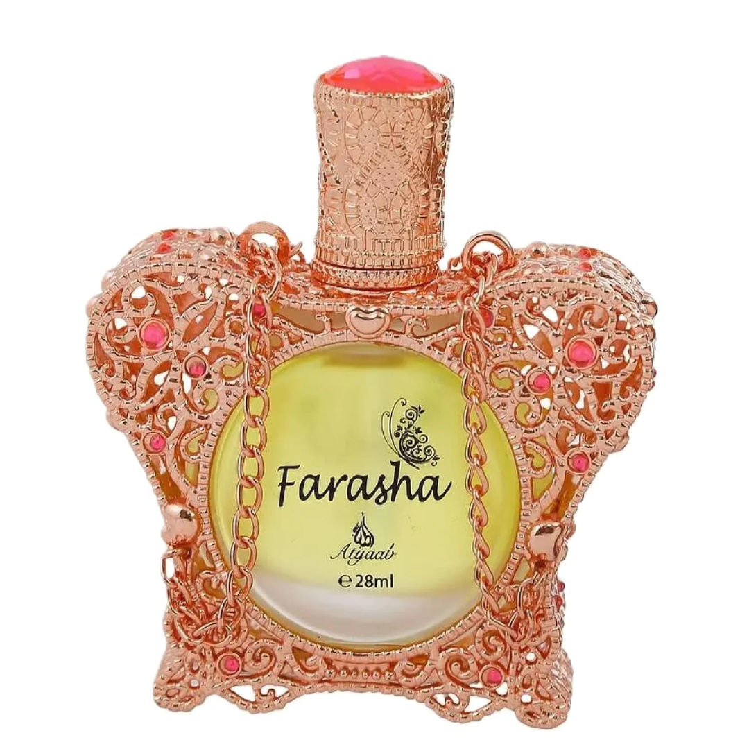 Farasha Atyaab is a radiant and enchanting Eau de Parfum that captures the spirit of femininity and elegance. Designed for the modern woman who embraces grace and strength, this fragrance unfolds with a dazzling fusion of floral and fruity notes, layered over a velvety base of amber and musk. It’s a scent that sparkles with charm and lingers with sophistication, perfect for both everyday elegance and special moments.
